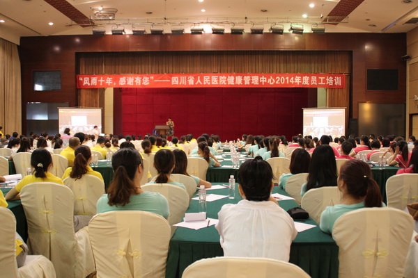 作为四川省人民医院健康管理/体检中心2014年员工培训的重要活动之一, 7月27日,体检中心在眉山东湖对200余名员工开展了内容丰富的素质培训。经过精心的筹划与准备,特邀老师专题讲授3小时,老师例举了大量生动实例,在职业意识、职业心态、职业道德、职业行为、职业技能等方面进行培训。