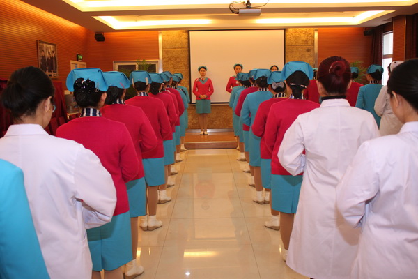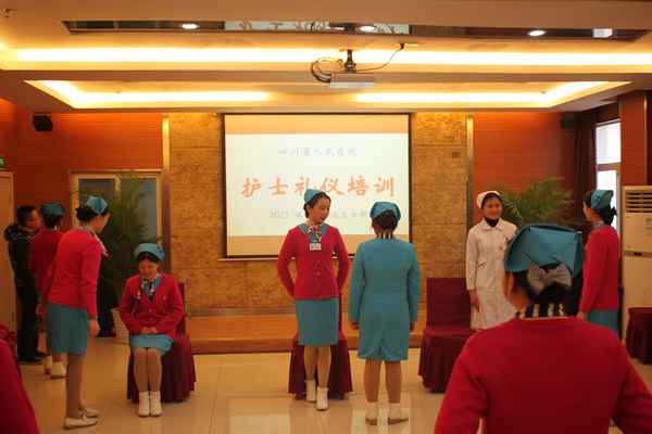 图为四川省人民医院健康体检中心北区分部护士礼仪培训现场