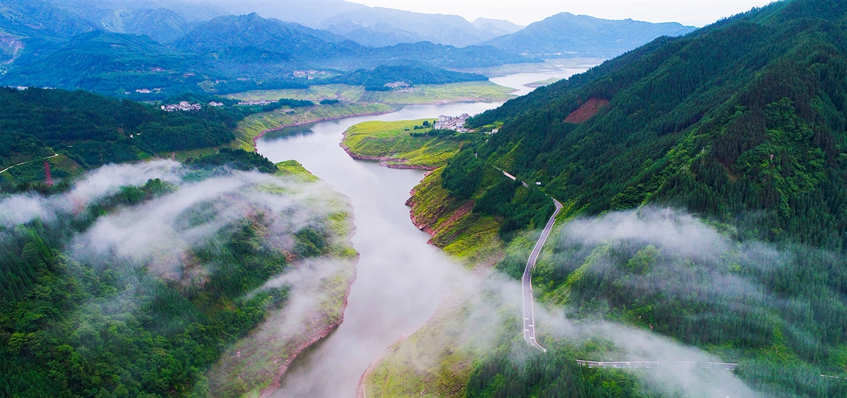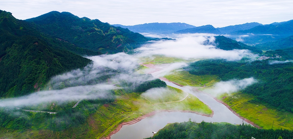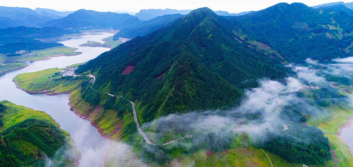 眉山市洪雅县瓦屋山镇有一复兴村,这里是四川省唯一的全国生态文化村。(航拍四川飞手 李思聪 摄)