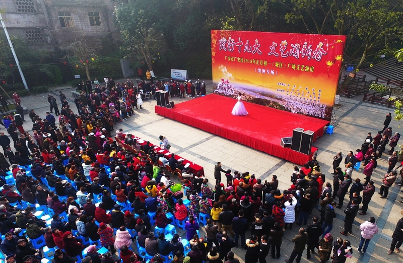 大年初一,广安市的文艺演出为市民送上丰盛的新年“文化大餐”。歌舞、小品、连唱等具有浓郁地方特色的文艺节目,让市民在热闹喜庆的气氛中欢度新年。