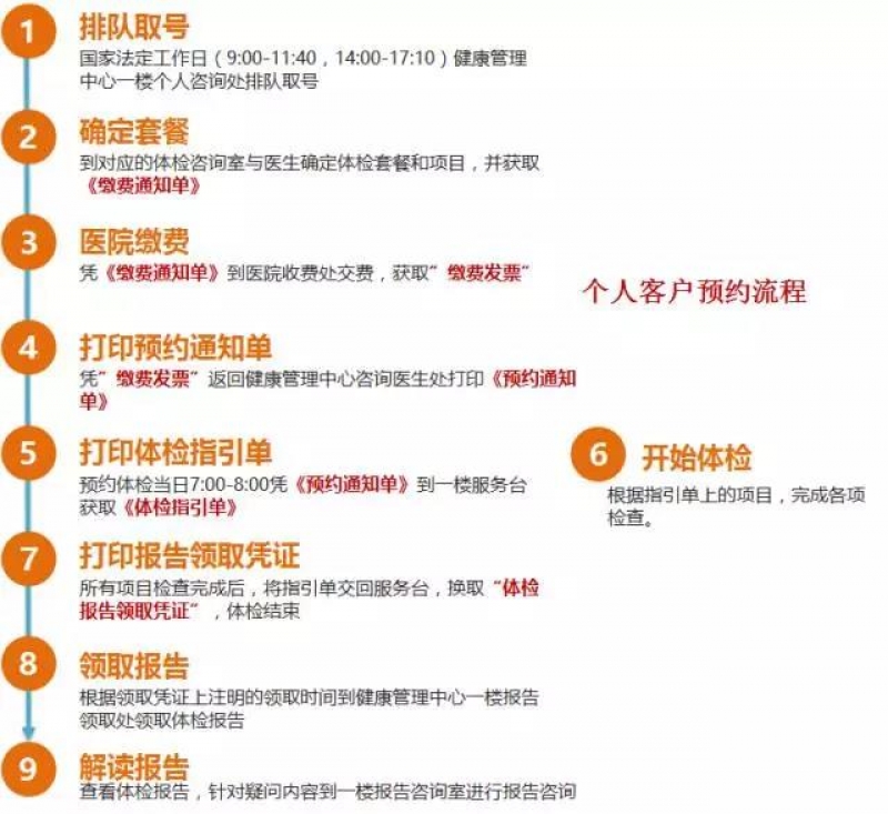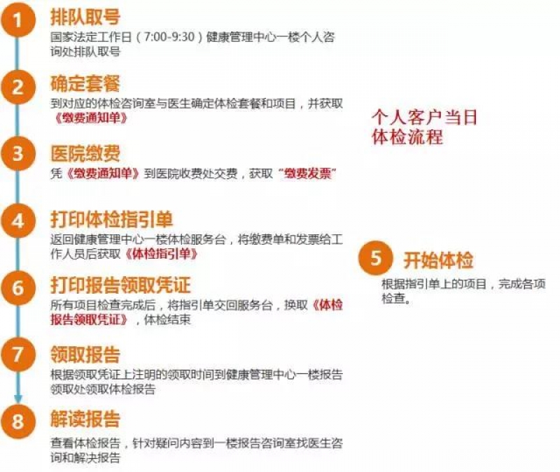 个人客户单日体检流程: