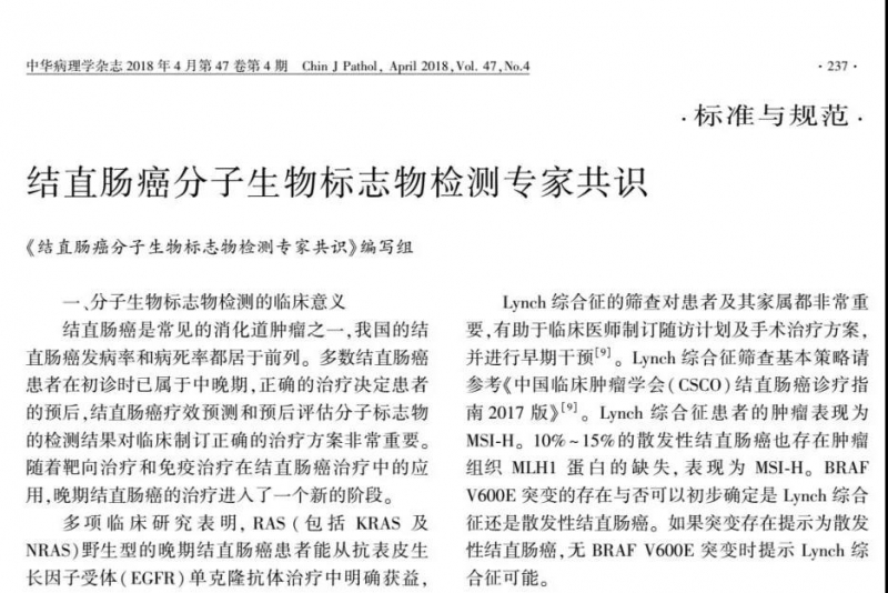 此次共识的发布,标志着结直肠癌的辅助化疗、疗效预测及预后等方面,全面迈入了利用分子生物标志物细分人群的精准治疗大时代。由于目前国内检测方法多样,缺少统一规范的标准。共识的制定是对“精准检测,精准治疗”的完美诠释,让临床和病理医师对结直肠癌分子生物标志物的检测及应用,做到有规可依,有据可循,最终为结直肠癌患者的临床治疗保驾护航!