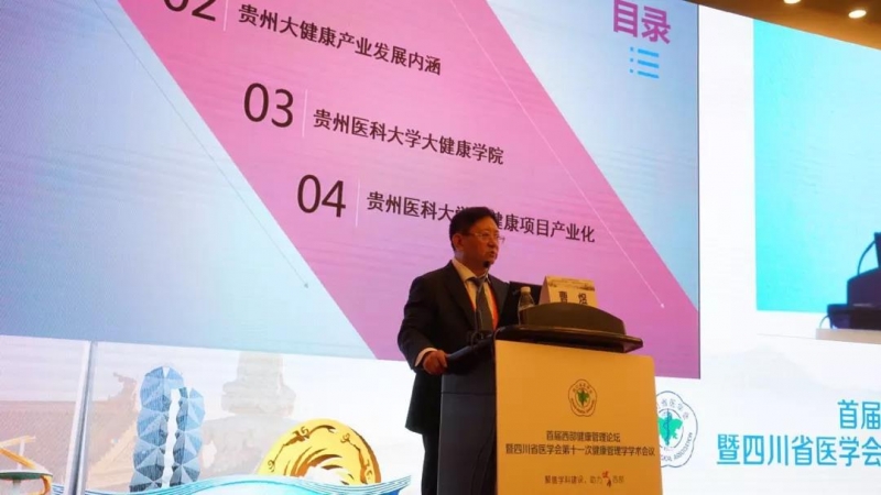 贵州医科大学大健康学院副院长、贵州省健康管理协会会长曹煜以贵州医科大学大健康学院为例,介绍了大健康行业发展形势与内涵,并强调在贵州省省委、省政府的大力支持下,大健康产业作为战略性新兴产业势头正起、锐气十足。