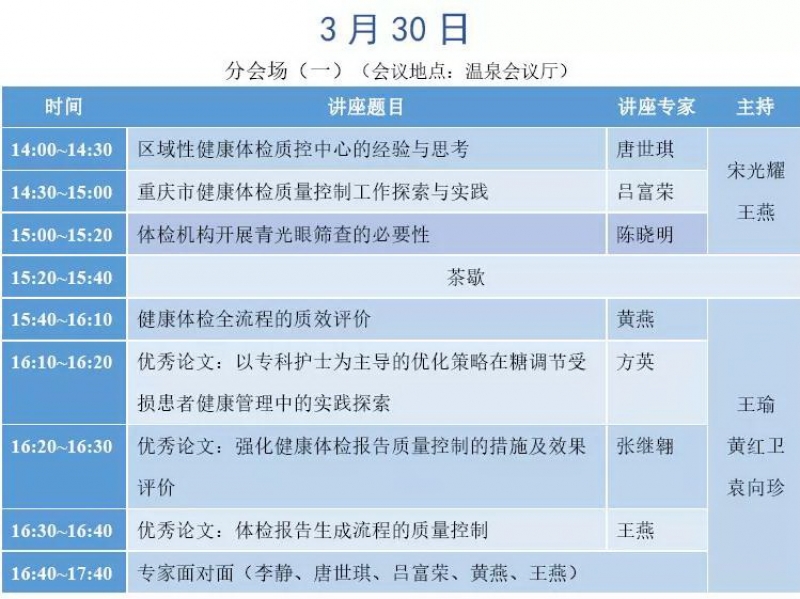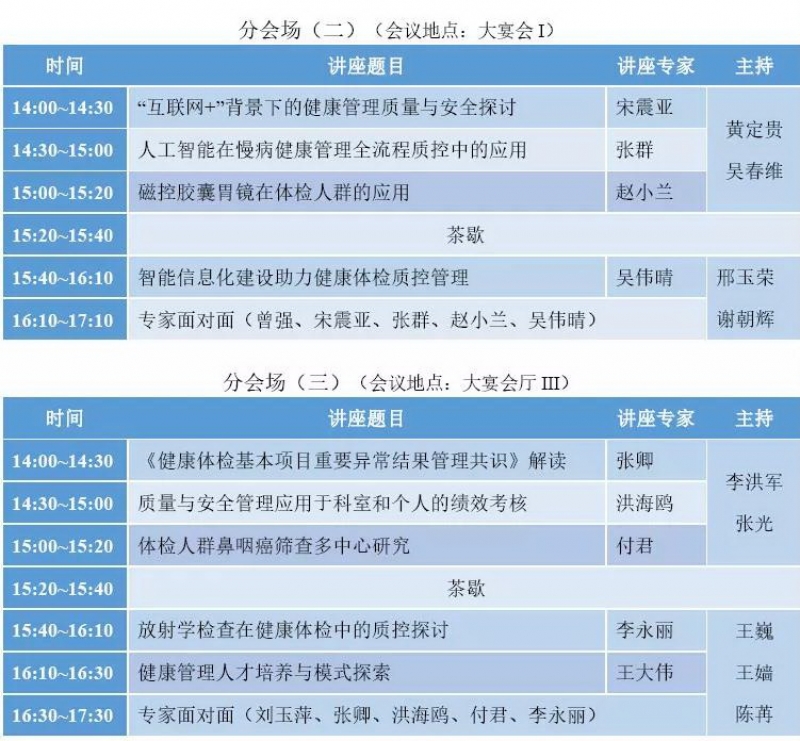 邀请全国近30位知名健康管理专家从主检报告规范、慢病规范化筛查与管理、体检流程质控、重要异常结果管理、科室绩效、国家级基金申请、互联网与信息化多方面展开精彩学术讲座。