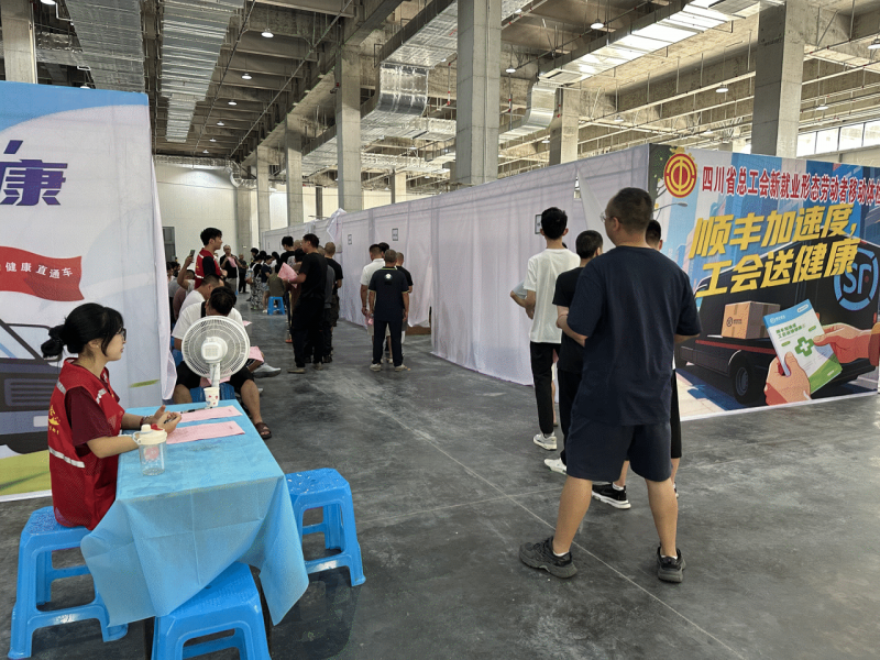 载着对新就业形态劳动者的关心关爱,7月23日,四川省总工会成都工人疗养院的移动体检车开进了位于双流区的顺丰华西分拔区,为快递员等数百名新业态劳动者开展“工会暖丰健康同行移动体检服务。劳动者在“家门口”就能享受彩超、肝肾功能、心电图等专业检查,不必请假离岗,无需长途奔波,让“关爱零距离”"从承诺化为行动,把便捷服务送到心坎上。