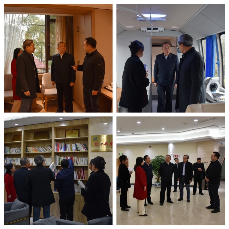 调研中,调研组一行在健康管理中心查看了医疗设备配置、新技术应用及日常运营管理,了解职工健康体检服务模式、质量控制等情况。在移动体检车上,查看了车辆的功能布局、检测项目及外出体检管理,详细询问了四川工会移动体检工作开展情况。调研组一行深入疗休养中心,实地参观职工书屋、健身区及住宿条件,翻阅藏书种类,了解了借阅管理及疗休养工作开展情况。