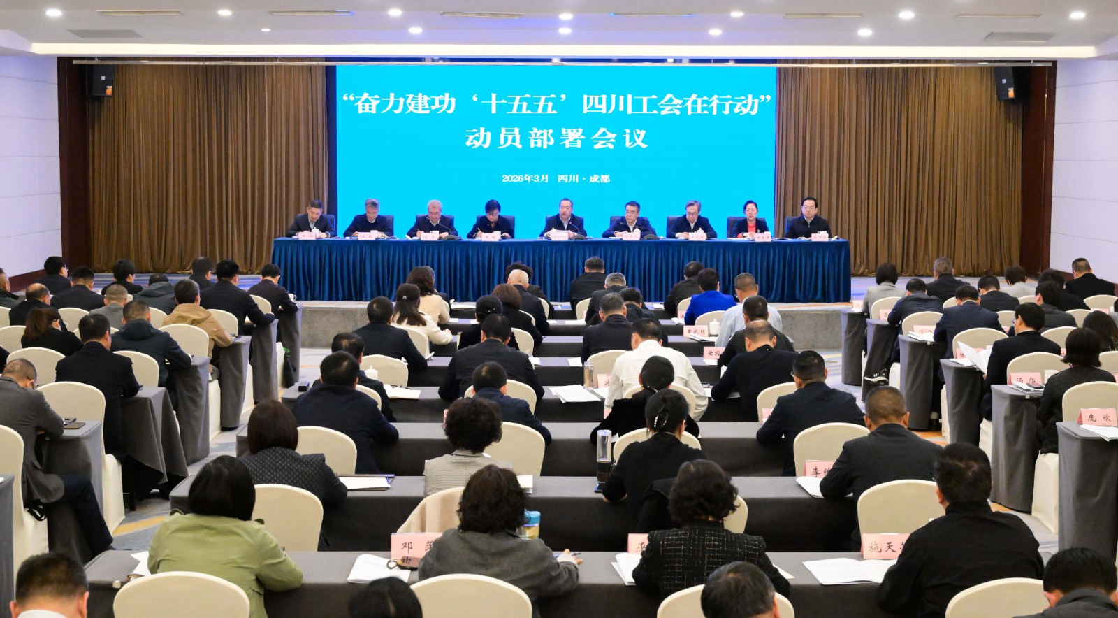 3月12日,“奋力建功‘十五五’ 四川工会在行动”动员部署会议在成都召开。会议深入贯彻落实党的二十届四中全会、全国两会和省委十二届八次全会精神,全面对标中央和省委关于“十五五”发展部署要求,动员全省职工群众和各级工会打好“十五五”开局之战。省委常委、省总工会主席普布顿珠出席会议并讲话。